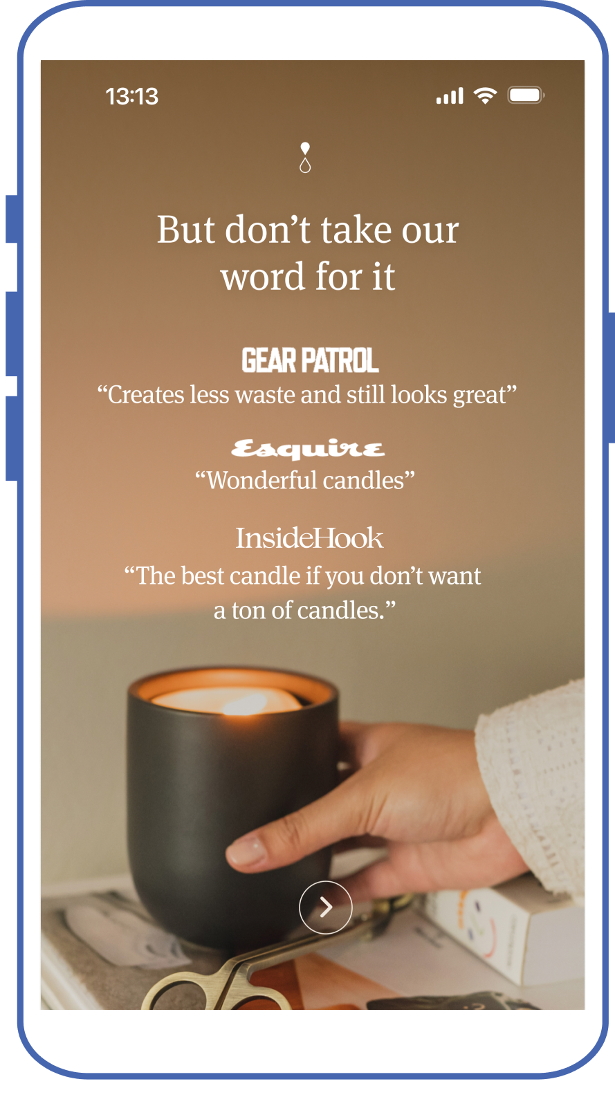Scent is historically hard to translate over a digital platform, so we focused in on the fact that you could edit your surrounding instantly, as well as leaning on customer and press testimonials to showcase the beauty of the Fill Mill product.